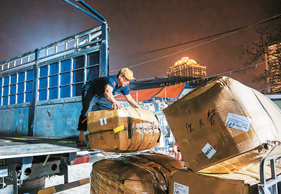近日,在越南河內(nèi)廣霸花市,商販將產(chǎn)自中國云南的鮮花從貨車上搬運(yùn)下來。新華社記者 朱 煒攝
