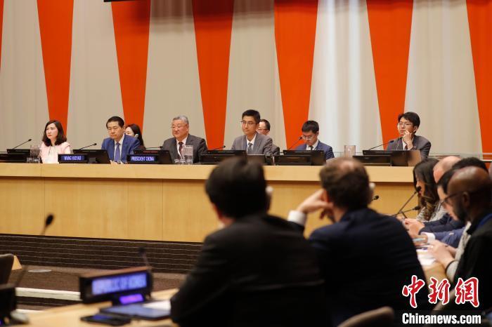 當?shù)貢r間4月23日,中國常駐聯(lián)合國代表傅聰在紐約聯(lián)合國總部主持“單邊主義和霸凌行徑對國際關(guān)系的沖擊”安理會阿里亞模式會議。 中新社記者 廖攀 攝