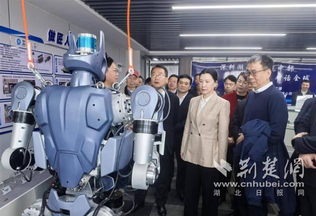 這是湖北省首個(gè)機(jī)器人領(lǐng)域技術(shù)創(chuàng)新中心,該中心由湖北科峰智能傳動(dòng)股份有限公司牽頭,聯(lián)合華中科技大學(xué)、武漢大學(xué)等20余所高校院所及產(chǎn)業(yè)鏈頭部企業(yè)共建,聘請(qǐng)中國(guó)工程院院士陳學(xué)東擔(dān)任戰(zhàn)略咨詢(xún)委員會(huì)主任、中國(guó)科學(xué)院院士劉勝擔(dān)任學(xué)術(shù)委員會(huì)主任。這標(biāo)志湖北在機(jī)器人核心技術(shù)創(chuàng)新與產(chǎn)業(yè)轉(zhuǎn)化上邁出關(guān)鍵一步。今年亮相“新春第一會(huì)”的“天問(wèn)”1號(hào)人形機(jī)器人,由武漢大學(xué)劉勝院士團(tuán)隊(duì)研發(fā)。全身關(guān)節(jié)有30個(gè)自由度,靈巧手有7個(gè)自由度。它的傳感器、靈巧手、仿生關(guān)節(jié)和芯片等核心部件,80%實(shí)現(xiàn)了“鄂研鄂產(chǎn)”。