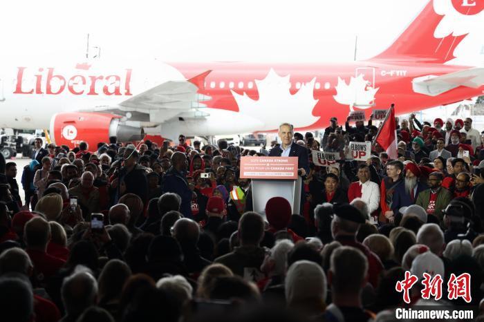 當?shù)貢r間4月26日,加拿大多倫多,加拿大自由黨領(lǐng)導(dǎo)人、加現(xiàn)任總理馬克·卡尼(Mark Carney)在多倫多皮爾遜國際機場舉行的一場競選造勢集會上對支持者發(fā)表演講。(資料照片) 中新社記者 余瑞冬 攝