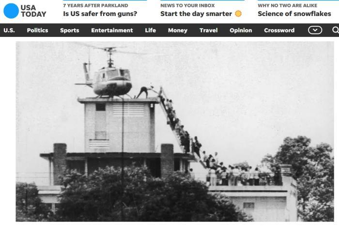 1975年4月30日,美軍直升機從屋頂撤離人員。圖/《今日美國報》網(wǎng)站