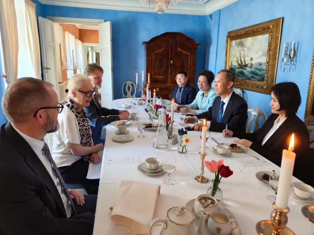 中國駐瑞典大使崔愛民會見瑞典哥特蘭省省督戈爾尼茨卡等官員。中國駐瑞典大使館供圖