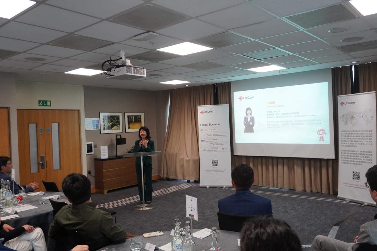 中國聯(lián)通歐洲大區(qū)總經(jīng)理薛文霞介紹聯(lián)通在歐洲的發(fā)展規(guī)劃?;顒又鬓k方供圖