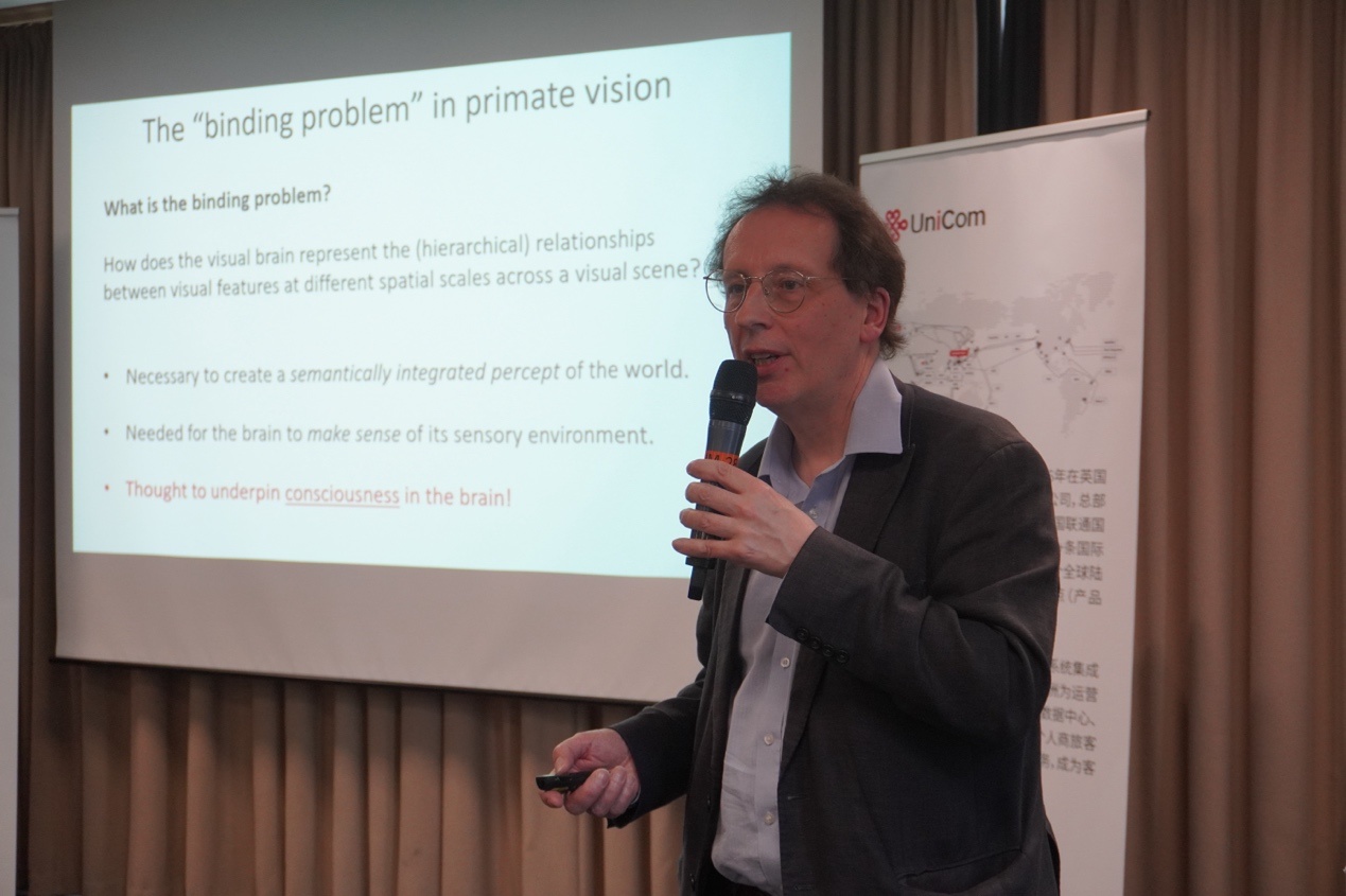 牛津大學(xué)應(yīng)用心理學(xué)研究中心西蒙·斯特林格博士介紹人工智能具體發(fā)展。活動主辦方供圖