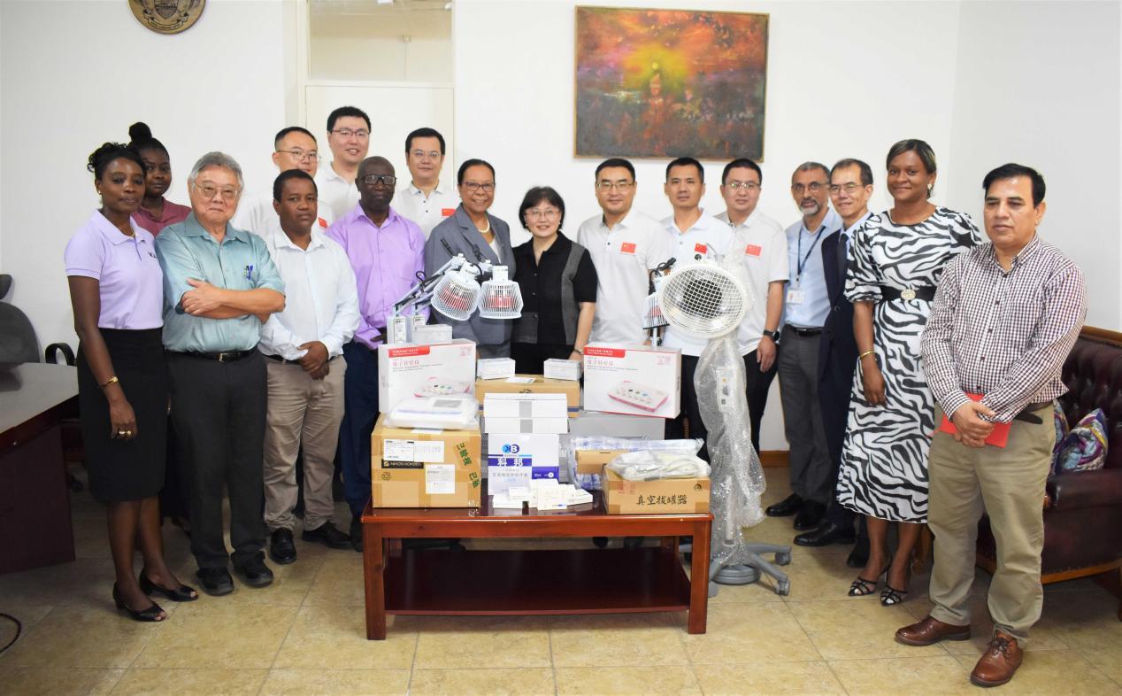 中方向塞舌爾維多利亞醫(yī)院捐贈醫(yī)療設(shè)備。駐塞舌爾使館供圖