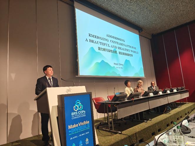 化學品和廢物三公約2025年締約方大會在瑞士日內(nèi)瓦召開,會期為2025年4月28日至5月9日,大會主題為“讓無形變得有形:化學品和廢物的健全管理”。超過150個締約方國家和觀察員國家、聯(lián)合國環(huán)境規(guī)劃署、聯(lián)合國開發(fā)計劃署、聯(lián)合國工發(fā)組織、全球環(huán)境基金秘書處等國際組織、全球化學品和廢物三公約區(qū)域技術中心以及非政府組織的2000余位代表參會。大會期間,中心還舉辦了主題為“無形污染 有形行動:中國履約成效與實踐” 展覽,分享了中國推動《斯德哥爾摩公約》履約和健全化學品和廢物環(huán)境管理的成功經(jīng)驗和案例。