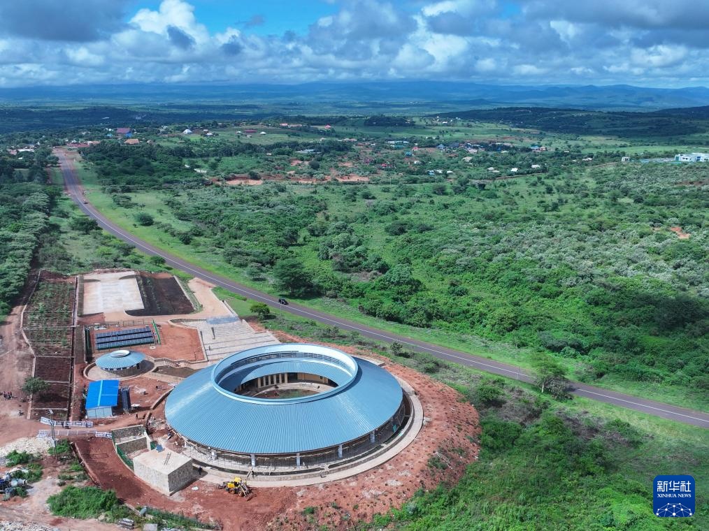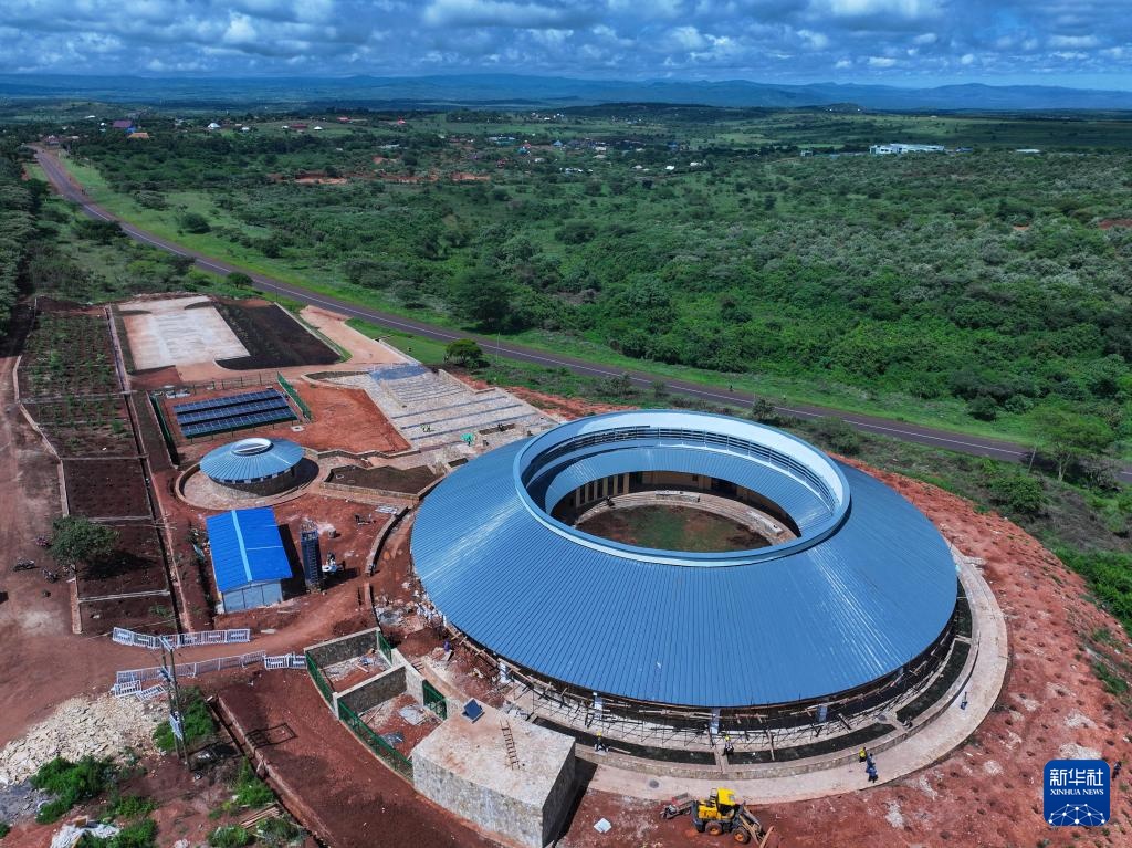 這是4月26日在坦桑尼亞阿魯沙拍攝的恩戈羅恩戈羅-倫蓋地質(zhì)公園博物館施工現(xiàn)場(無人機照片)。新華社記者 李亞輝 攝