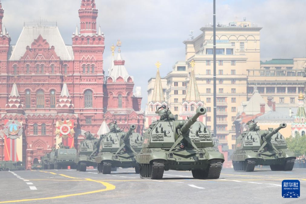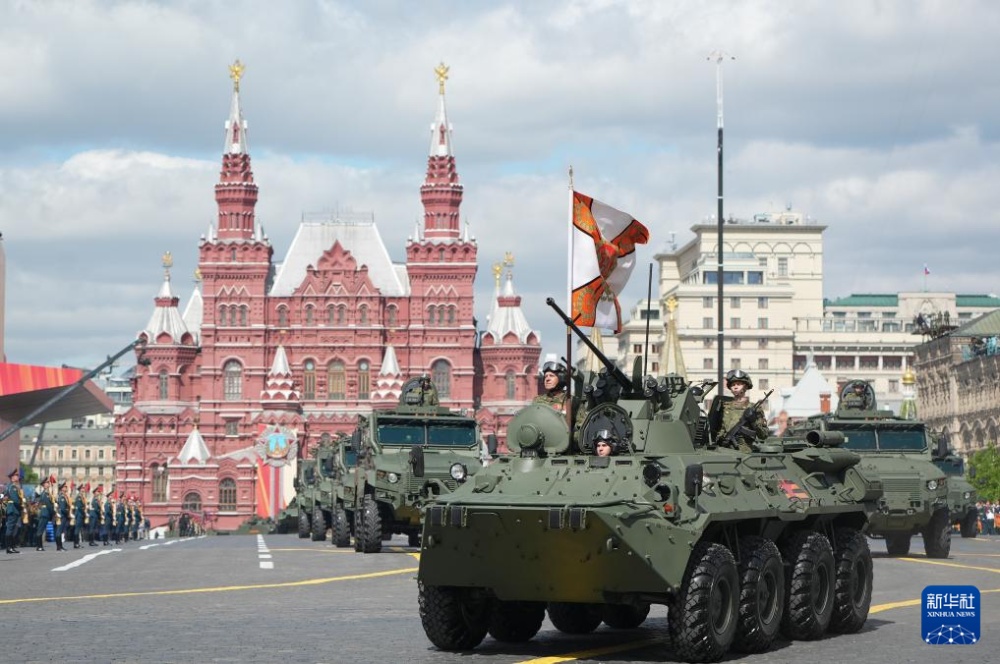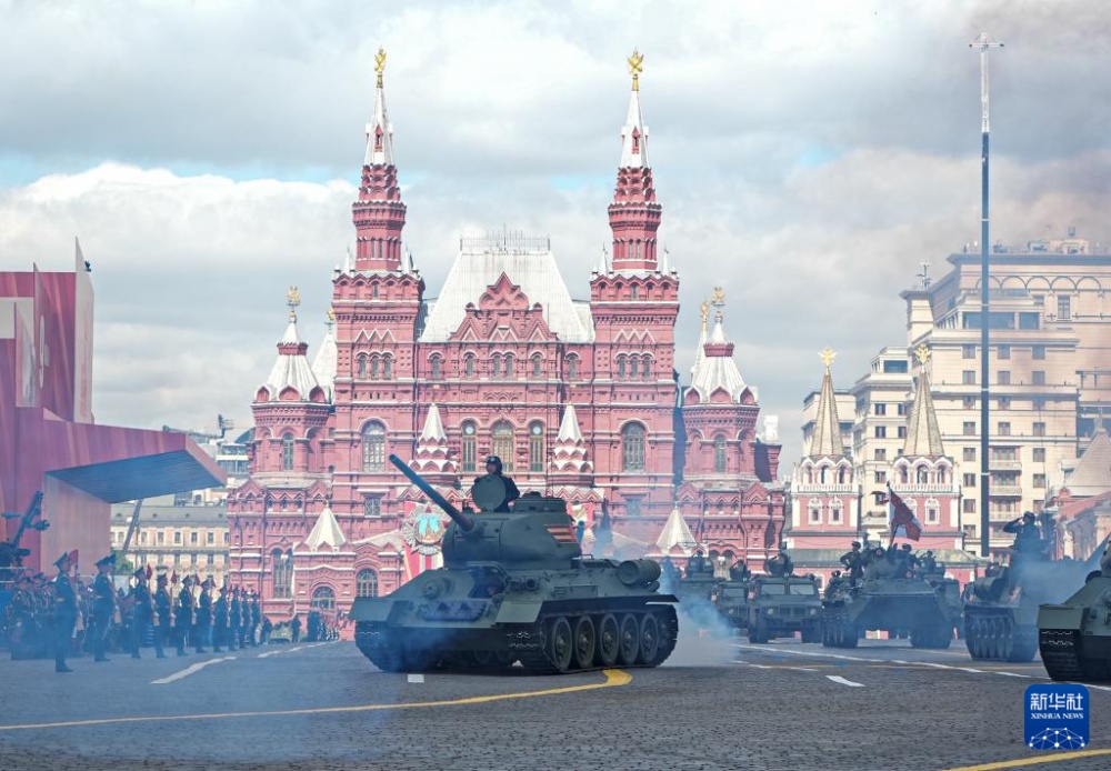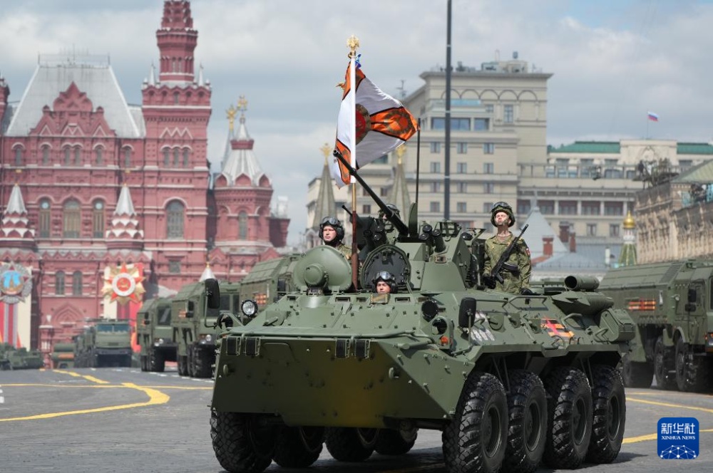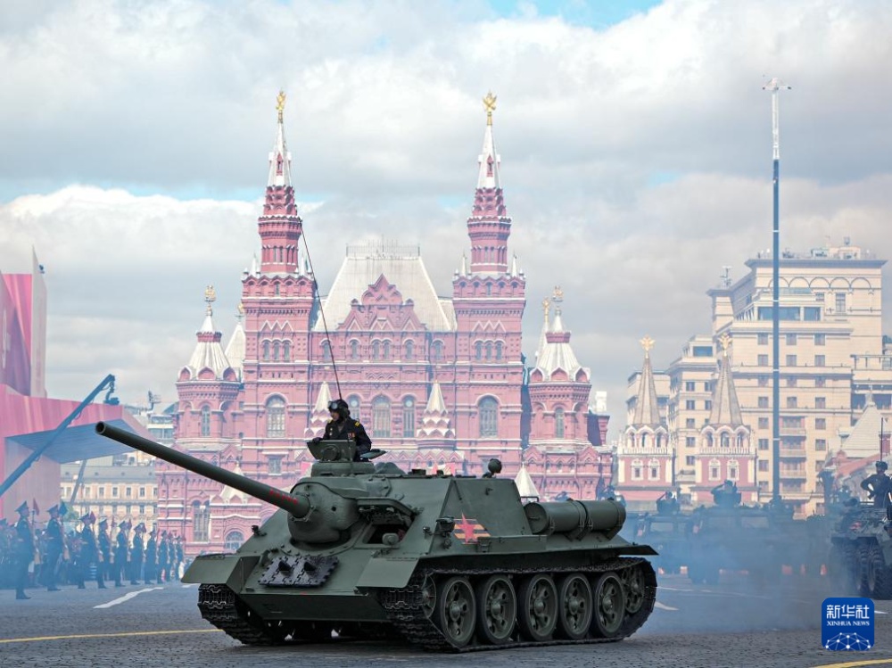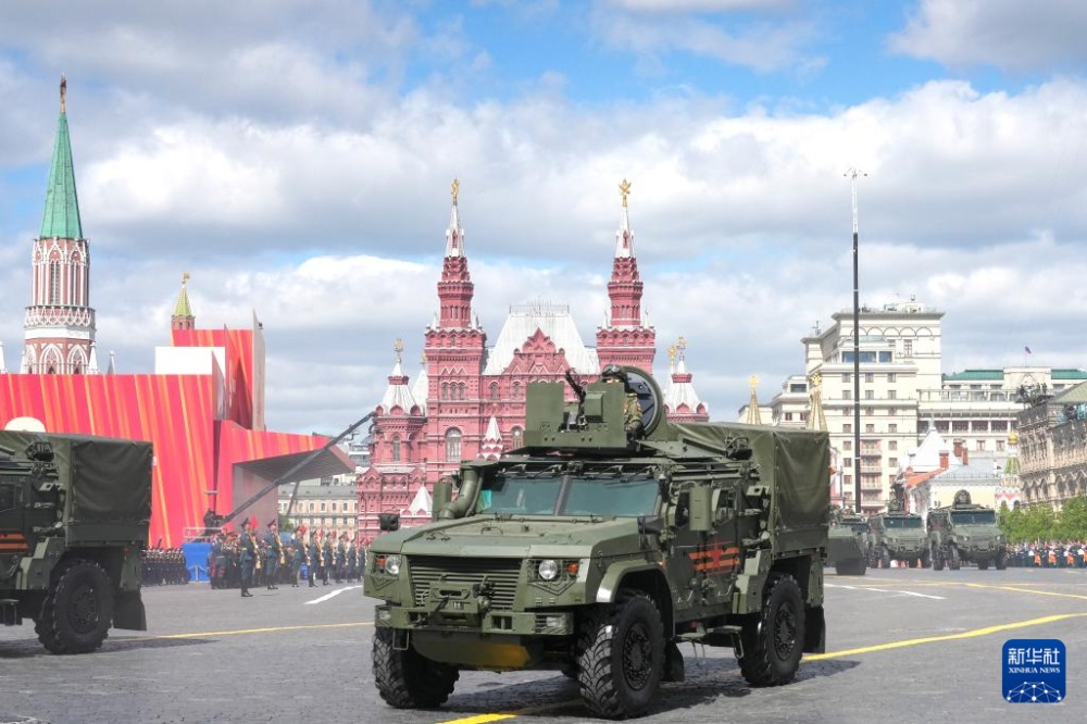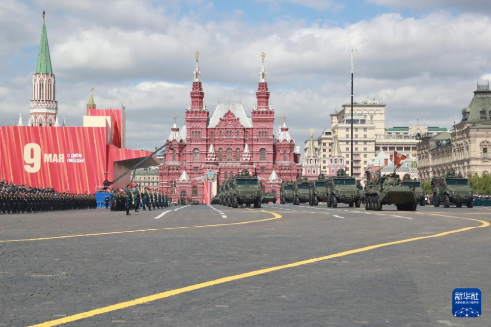 5月9日,在俄羅斯首都莫斯科,軍用車(chē)輛參加紀(jì)念蘇聯(lián)偉大衛(wèi)國(guó)戰(zhàn)爭(zhēng)勝利80周年閱兵式。