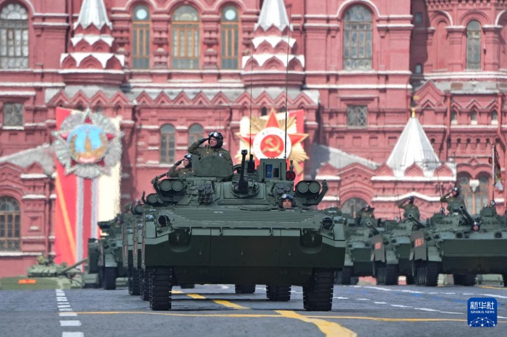 5月9日,在俄羅斯首都莫斯科,步兵戰(zhàn)車(chē)參加紀(jì)念蘇聯(lián)偉大衛(wèi)國(guó)戰(zhàn)爭(zhēng)勝利80周年閱兵式。