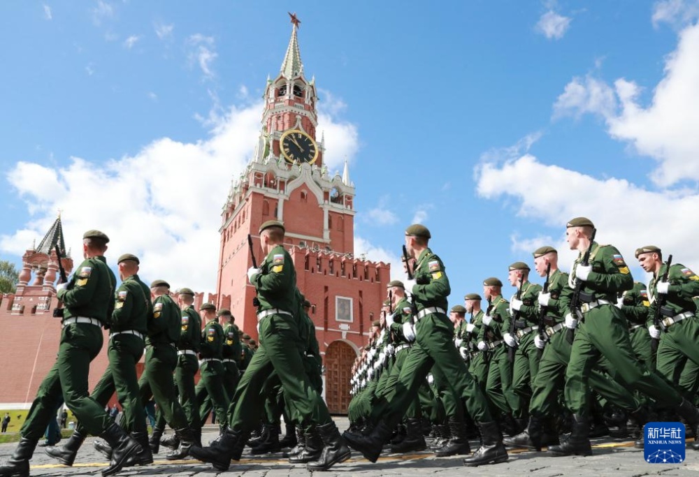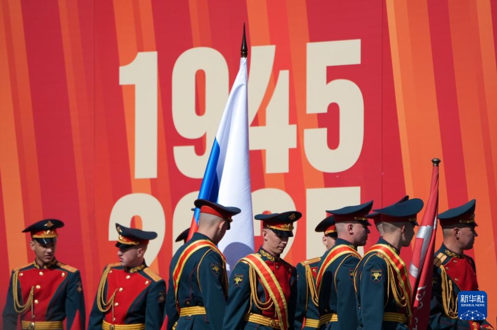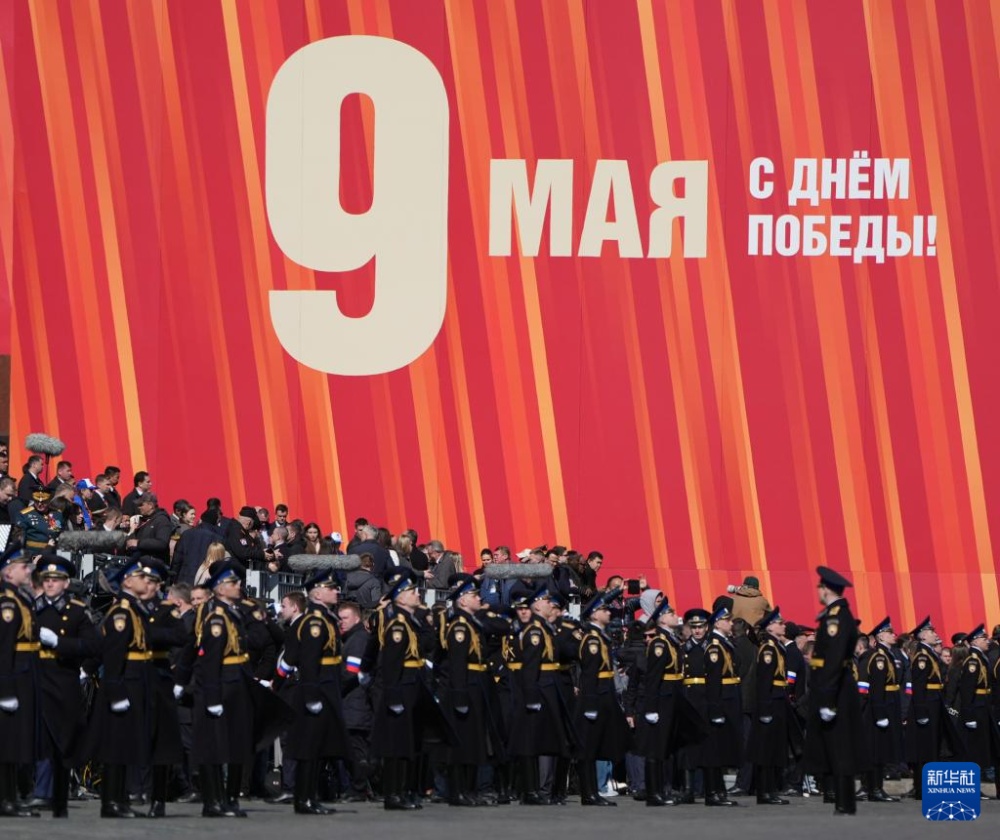 5月9日,在俄羅斯首都莫斯科,儀仗隊(duì)準(zhǔn)備參加紀(jì)念蘇聯(lián)偉大衛(wèi)國(guó)戰(zhàn)爭(zhēng)勝利80周年閱兵式。