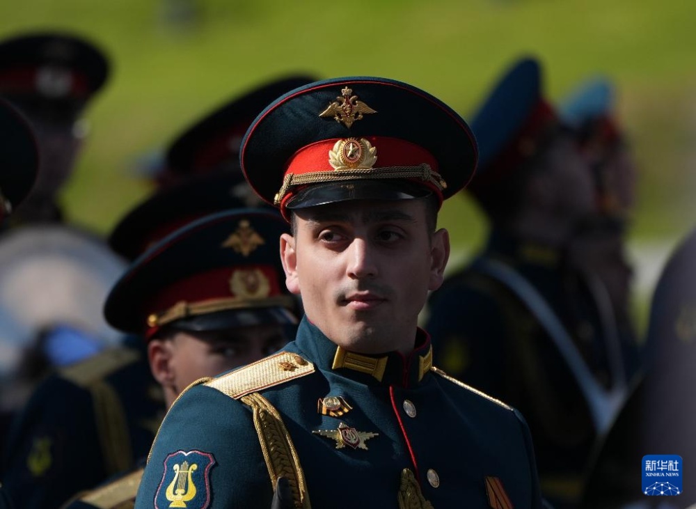 5月9日,在俄羅斯首都莫斯科,軍樂(lè)隊(duì)成員準(zhǔn)備參加紀(jì)念蘇聯(lián)偉大衛(wèi)國(guó)戰(zhàn)爭(zhēng)勝利80周年閱兵式。