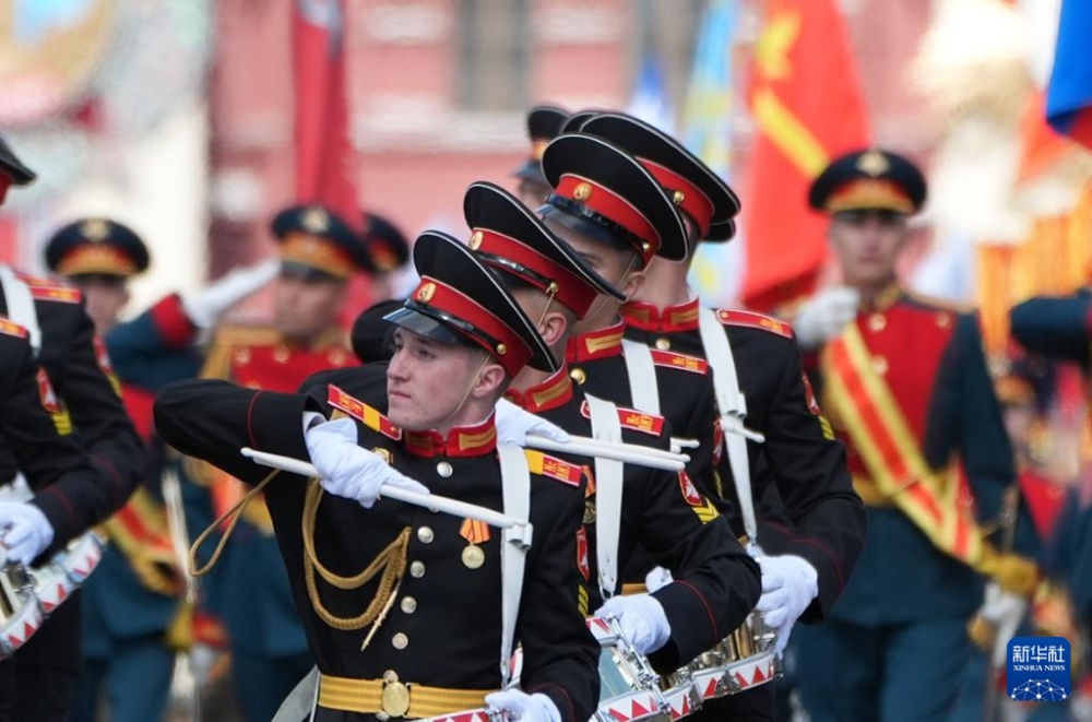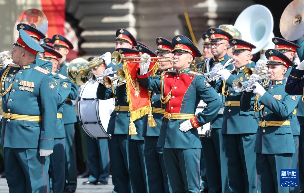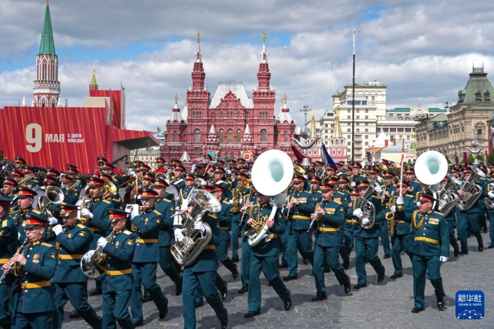 5月9日,在俄羅斯首都莫斯科,軍樂(lè)隊(duì)參加紀(jì)念蘇聯(lián)偉大衛(wèi)國(guó)戰(zhàn)爭(zhēng)勝利80周年閱兵式。