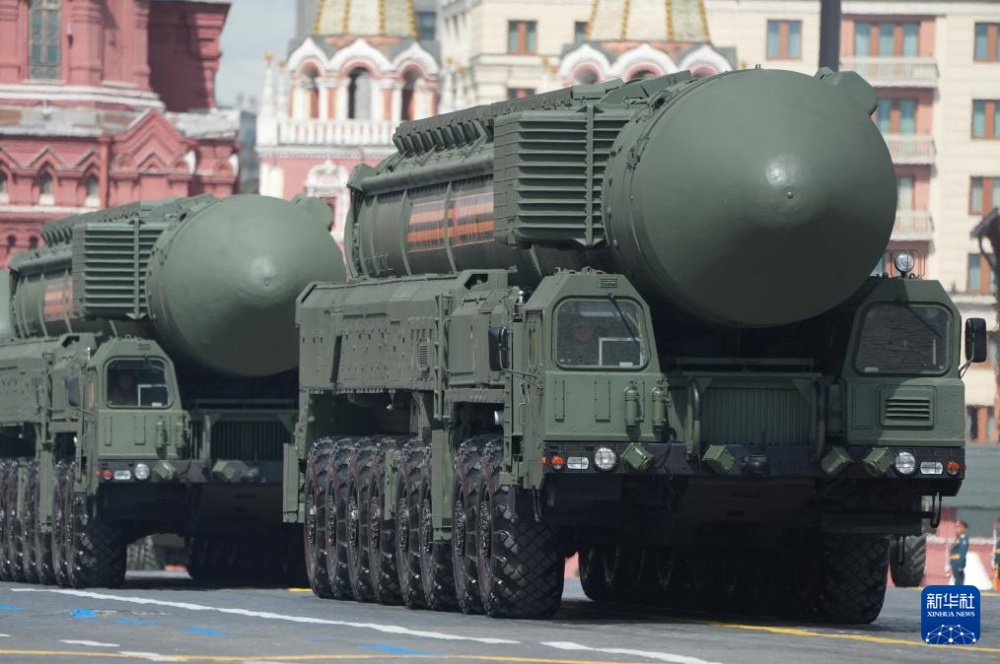 這是5月9日在俄羅斯首都莫斯科舉行的紀(jì)念蘇聯(lián)偉大衛(wèi)國(guó)戰(zhàn)爭(zhēng)勝利80周年閱兵式上拍攝的洲際彈道導(dǎo)彈。