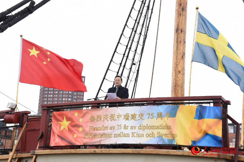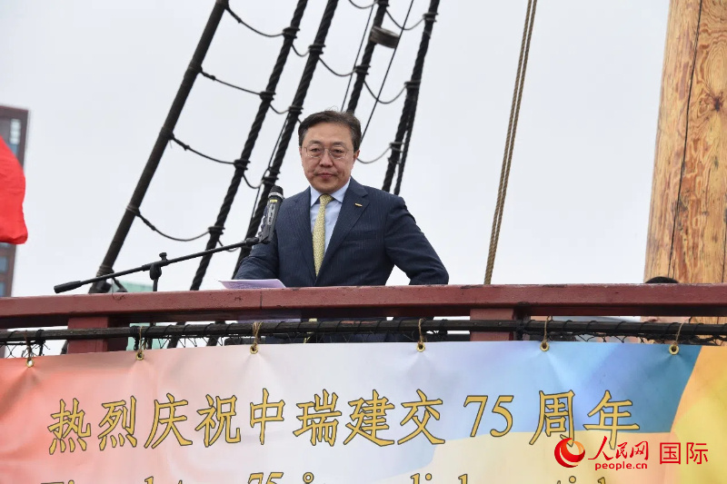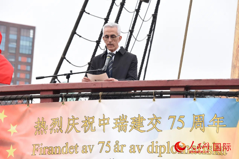下午3時許,招待會在中瑞兩國國歌聲中拉開序幕。中國駐哥德堡總領(lǐng)事楊培棟首先致辭。他說,1739年,“哥德堡”號商船乘風破浪抵達中國,成為兩國經(jīng)濟文化交流的開端。1950年,瑞典在西方國家中第一批與新中國建交,開啟了兩國友好的新篇章。75年來,中瑞關(guān)系歷久彌新,雙方互利合作成果豐碩,在經(jīng)貿(mào)、科技、教育、文化等領(lǐng)域的交流合作不斷擴大。