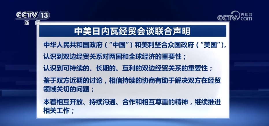 央視網(wǎng)消息:5月12日,中美日內(nèi)瓦經(jīng)貿(mào)會(huì)談聯(lián)合聲明發(fā)布。如何讀懂這份聲明,聲明中透露出哪些重要信息?來看總臺(tái)央視記者財(cái)經(jīng)老王的解讀。