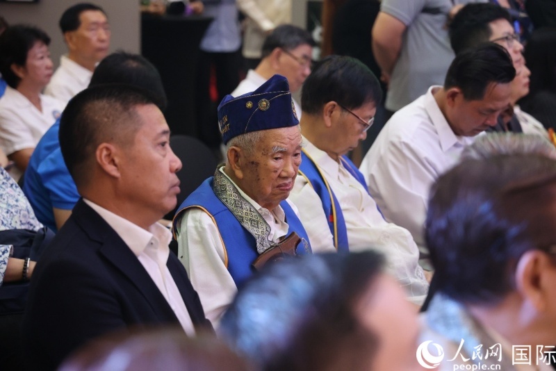 菲律賓華僑抗日游擊支隊老戰(zhàn)士王振厘出席圖片展的開幕活動。人民網(wǎng)記者 樊帆攝