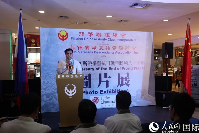 紀念世界反法西斯戰(zhàn)爭勝利八十周年圖片展,在馬尼拉中國城美加廣場隆重舉行。人民網(wǎng)記者 樊帆攝