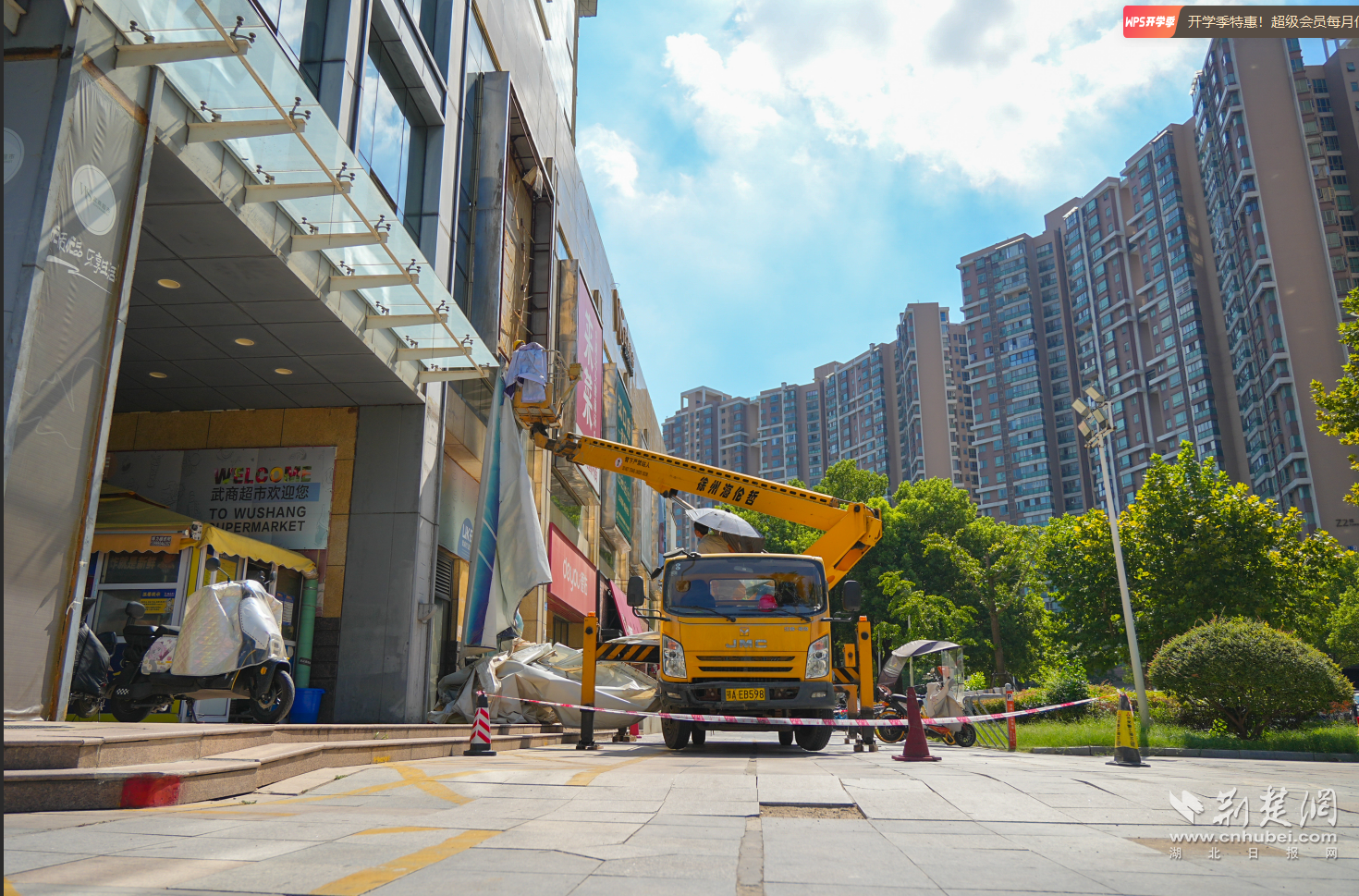“存在安全隱患的廣告,堅決依法拆除,絕不姑息!”8月19日上午,在常青花園中央商業(yè)街武商量販門前,東西湖區(qū)城管執(zhí)法局市政科相關(guān)負(fù)責(zé)人介紹說。在現(xiàn)場,施工人員正搭乘高空作業(yè)車,對武商量販外立面的問題廣告進(jìn)行一一拆除。據(jù)了解,常青花園中央商業(yè)街人流量大、廣告設(shè)置密集,部分廣告牌因長期風(fēng)吹日曬出現(xiàn)畫面破損等問題,既影響市容環(huán)境,更對市民安全構(gòu)成潛在威脅。
