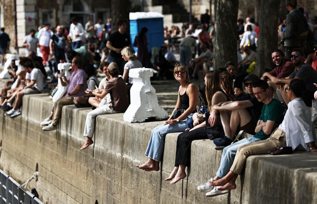 7月5日,人們在法國巴黎塞納河邊消暑休閑。新華社記者高靜攝