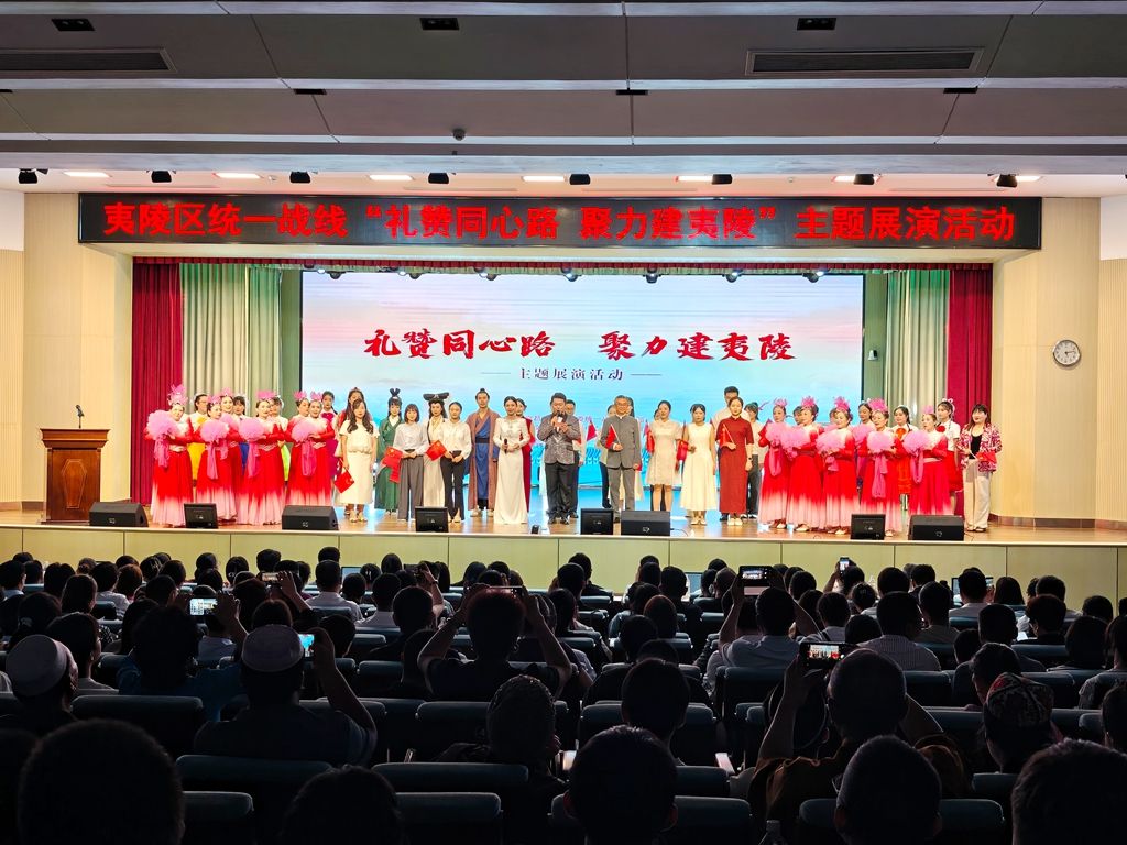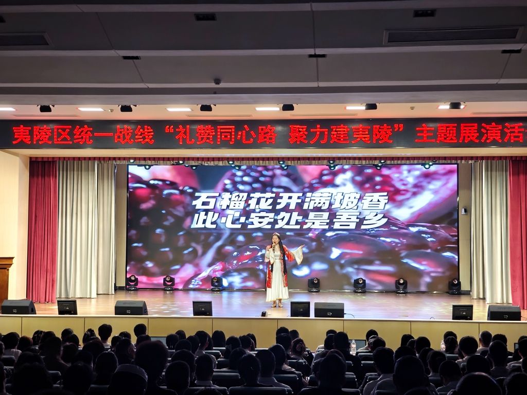 展演活動(dòng)分初心啟征程、同心譜新篇、同行筑華章等三個(gè)篇章?;顒?dòng)在精彩的舞蹈表演《青春飛揚(yáng)》中拉開帷幕。區(qū)民革黨員演講《我驕傲,我是一名民革人》,字字彰顯“風(fēng)雨同舟”的初心,詩朗誦《難忘》、情景劇《激流夜航》等節(jié)目,帶大家回望抗戰(zhàn)時(shí)期的烽火歲月;政法系統(tǒng)帶來的詩朗誦《憲法,我向您宣誓》、農(nóng)工黨夷陵支部表演情景劇《走在春風(fēng)里》等節(jié)目,生動(dòng)展示了新時(shí)代統(tǒng)戰(zhàn)成員圍繞中心、服務(wù)大局,在各自領(lǐng)域建功立業(yè)的實(shí)踐風(fēng)采;演講《僑心報(bào)國,花木傳情》《從建設(shè)者到見證者——三代三峽人的時(shí)代答卷》,情景劇《遇見瀑布 情歸夷陵》等節(jié)目呈現(xiàn)了夷陵統(tǒng)一戰(zhàn)線成員凝心聚力、攜手共創(chuàng)夷陵美好未來的堅(jiān)定決心與生動(dòng)實(shí)踐。
