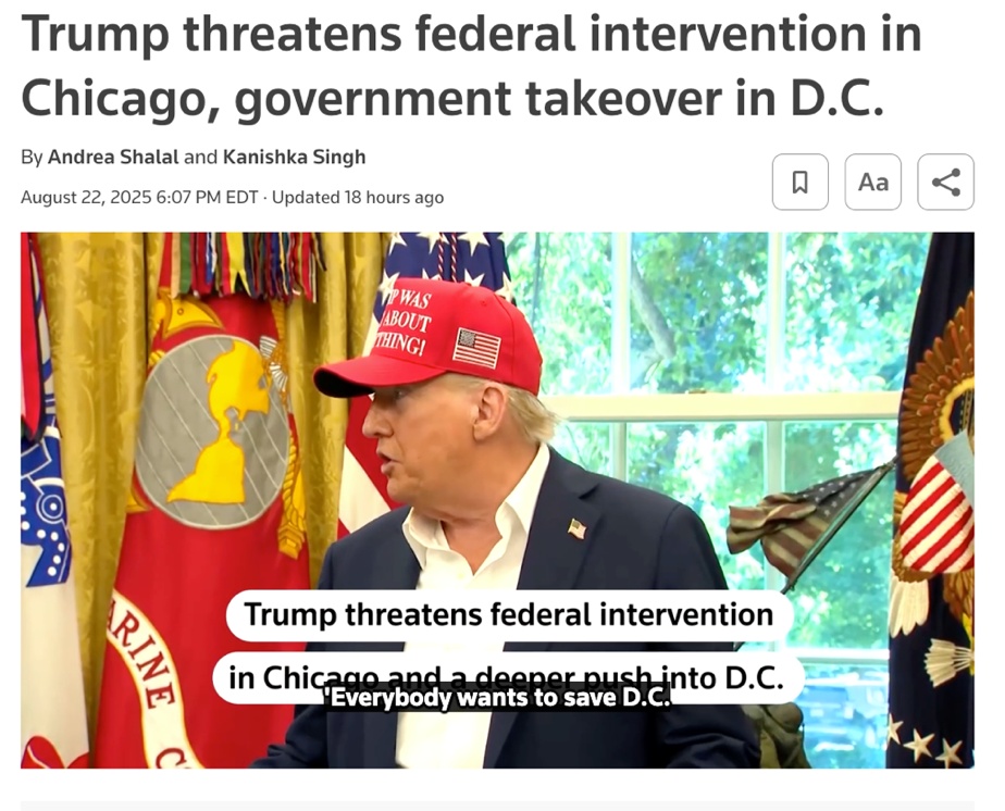 當(dāng)?shù)貢r間8月22日,美國總統(tǒng)特朗普表示,不排除宣布進入國家緊急狀態(tài)的可能,并強調(diào),如有必要,將對目前華盛頓特區(qū)的30天聯(lián)邦管控進行延長,同時點名芝加哥和紐約,批評這兩座城市“一片混亂”,暗示可能采取類似措施。此番表態(tài)迅速在美國社會引發(fā)爭議與震動。
