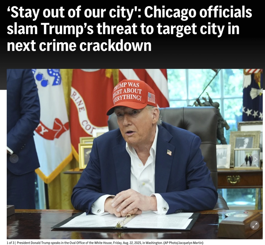 △美聯(lián)社報道,芝加哥官員抨擊特朗普對芝加哥的威脅,并稱“別來我們城市”。