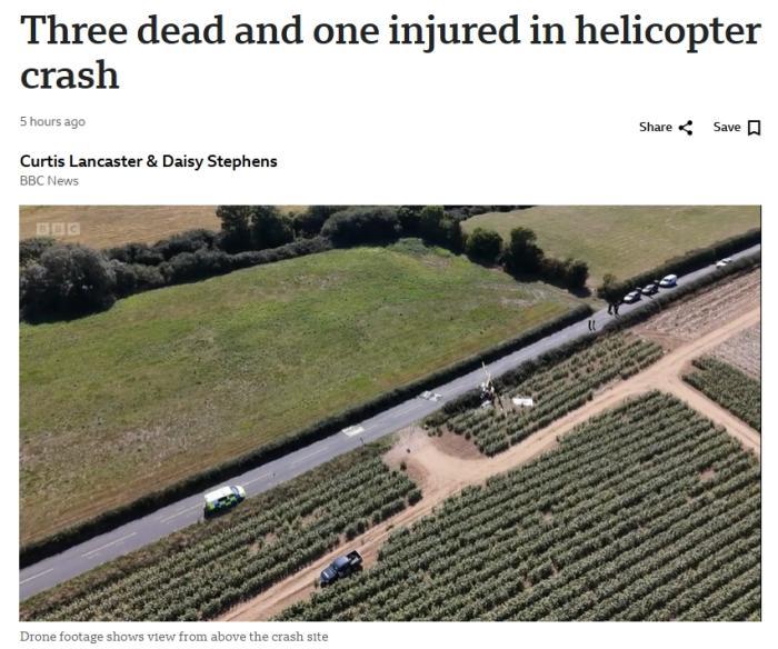 據(jù)報(bào)道,當(dāng)?shù)鼐奖硎?,這架直升機(jī)在一條公路旁墜落,當(dāng)時(shí)機(jī)上共有四人,幸存者的一名傷者被空運(yùn)送至附近醫(yī)院,目前傷勢(shì)仍然嚴(yán)重。