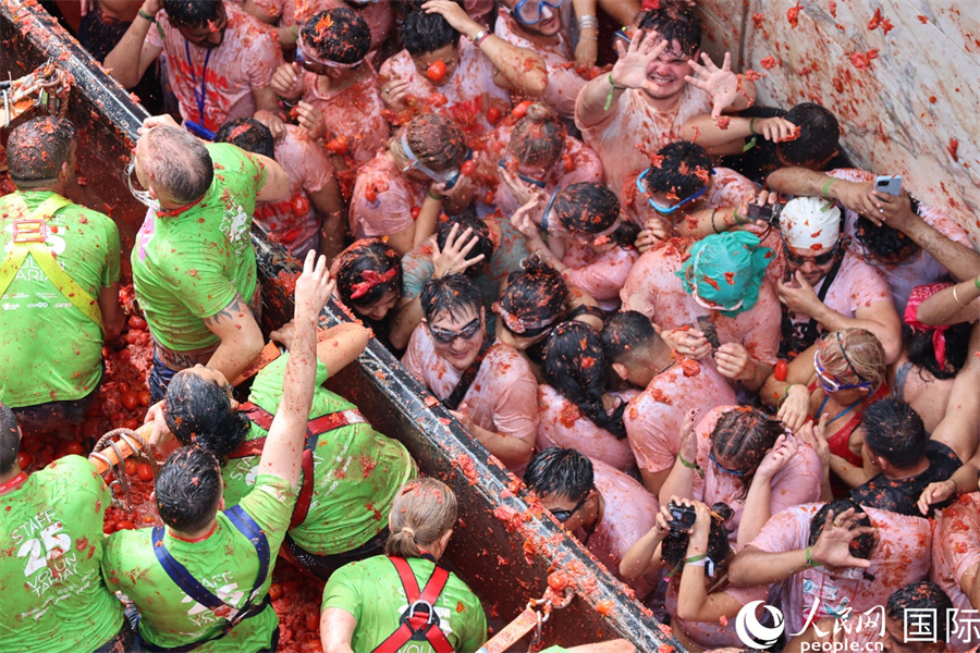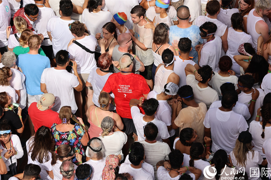 圖為人們參加“西紅柿大戰(zhàn)”。人民網(wǎng)記者 顏歡攝
