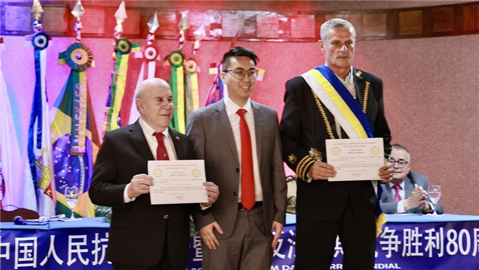 活動現(xiàn)場還舉行了授勛與表彰儀式。巴西軍事勛章協(xié)會向里約和統(tǒng)會頒發(fā)蒙特塞戰(zhàn)役致敬勛章。該勛章為紀(jì)念巴西軍隊在二戰(zhàn)中的功績而設(shè)立,專門授予為巴西社會作出貢獻(xiàn)的個人或機構(gòu)。里約和統(tǒng)會也向多位在推動中巴友誼方面作出貢獻(xiàn)的巴西人士頒發(fā)了榮譽證書。