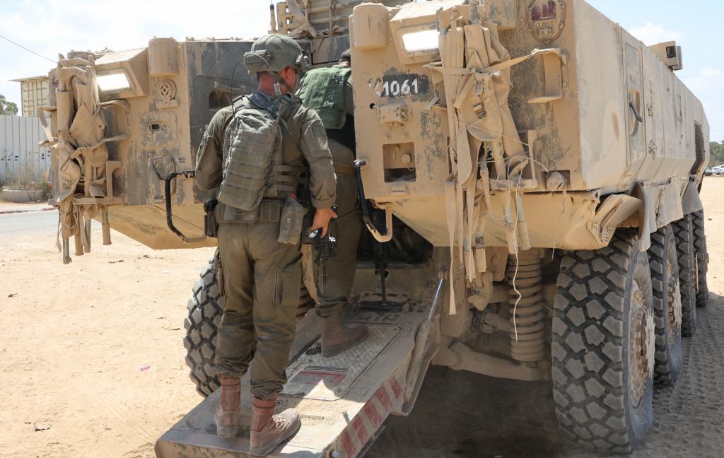 這是8月28日從加沙邊境以色列一側(cè)拍攝的以軍裝甲車(chē)和士兵。新華社發(fā)(吉爾·科恩·馬根攝)