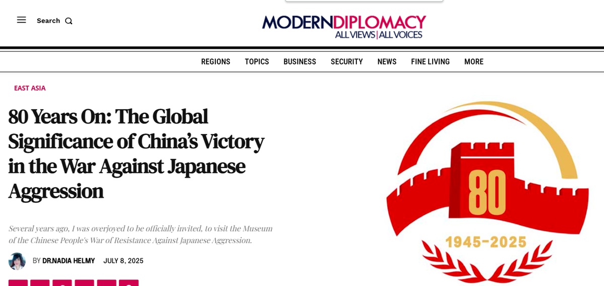 赫勒米教授在題為《80年過去:中國抗日戰(zhàn)爭勝利的世界意義》的文章中表示,中國抗戰(zhàn)勝利不僅是中華民族自強(qiáng)不息的壯舉,更為世界反法西斯戰(zhàn)爭勝利作出巨大貢獻(xiàn),中國所作的犧牲應(yīng)當(dāng)為全世界所銘記。