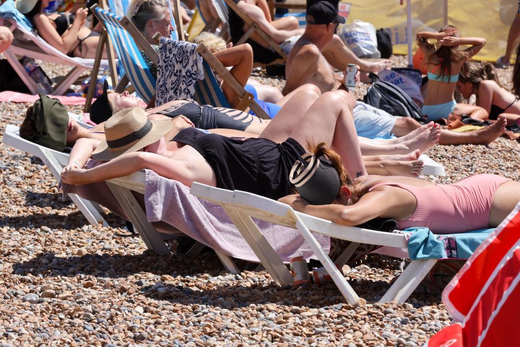 7月12日,人們?cè)谟?guó)南部布賴頓的海灘休閑。新華社發(fā)