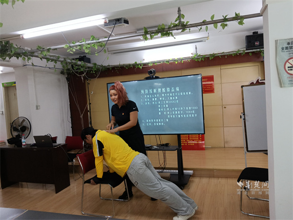 樊容帶領(lǐng)學員練習實用健康知識。 通訊員供圖