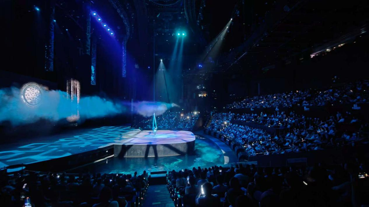 漢秀劇場版《水秀》融合了舞蹈、高空跳水、環(huán)球飛車、空中飛人、吊環(huán)、柔術等多種藝術表演形式,演員們在空中、水面和水下穿梭表演,呈現(xiàn)出一系列驚險刺激、美輪美奐的場景,令臺下觀眾驚嘆不已,掌聲不斷。