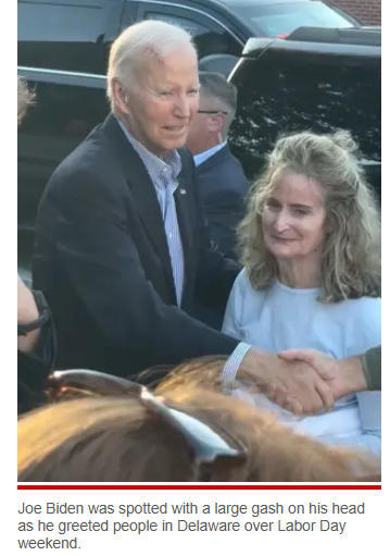 報(bào)道稱,社交媒體上流傳的一段畫(huà)面顯示,現(xiàn)年82歲的拜登顯得虛弱,額頭有一道明顯的紅色傷口,部分被白發(fā)遮蓋。