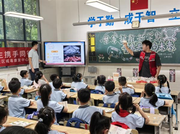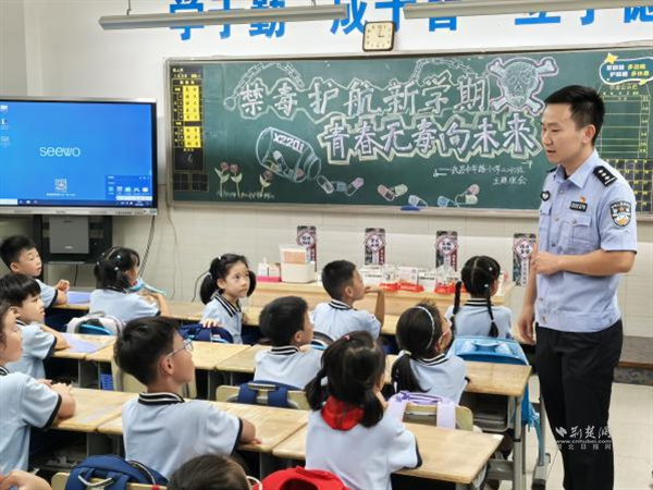 荊楚網(wǎng)(湖北日?qǐng)?bào)網(wǎng))訊(通訊員 陳博龍)為進(jìn)一步增強(qiáng)青少年毒品防范意識(shí),筑牢校園禁毒安全防線,9月8日,在武昌區(qū)禁毒辦的指導(dǎo)下,積玉橋街道聯(lián)合轄區(qū)派出所、社區(qū)戒毒康復(fù)中心及金都藍(lán)灣社區(qū),共同走進(jìn)中華路小學(xué)金都校區(qū),開展以“禁毒護(hù)航新學(xué)期、青春無(wú)毒向未來(lái)”為主題禁毒教育課堂,通過(guò)“宣講+課件+互動(dòng)+宣誓”的豐富形式,為新學(xué)期校園安全增添“防毒屏障”。