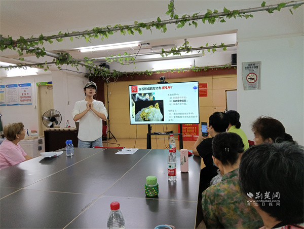 課堂上,科普講師手持多種天然寶石標本,向居民們娓娓道來寶石背后的地質傳奇。“這串水晶的每一顆珠子,都凝結著地球億萬年變遷的故事?!敝v師用形象生動的語言,為大家揭示巖漿如何孕育寶石、鉻元素怎樣為紅寶石賦予熾熱色澤、鉆石為何擁有極致硬度,以及珍珠形成的奇妙過程,將深奧的地質與化學知識轉化為通俗易懂的生活語言。