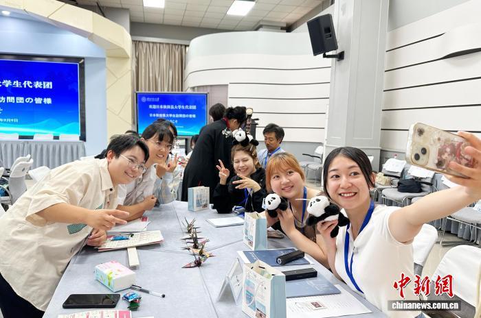 9月9日,日本秋田縣大學(xué)生代表團(tuán)與西北師范大學(xué)學(xué)生進(jìn)行交流互動(dòng),秋田大學(xué)學(xué)生兼田姬梨(右一)與新朋友們合影留念。中新社記者 丁思 攝