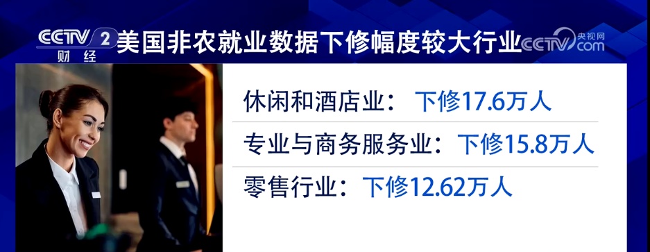具體而言,下修幅度最大的情況出現(xiàn)在休閑和酒店業(yè)、專業(yè)與商務服務業(yè),以及零售行業(yè),以上三大類均減少了10萬以上的就業(yè)人數(shù)。美國咨詢公司CulturePartners告訴CNBC,這些行業(yè)都與消費者需求密切相關(guān),意味著美國的家庭支出正在收縮。