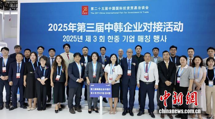 2025年9月9日,福建廈門,在第二十五屆投洽會上,中韓企業(yè)高管、機(jī)構(gòu)代表在交流會后合影留念,右七為韓國貿(mào)易協(xié)會上海代表處首席代表樸善景。記者 林卓瑋 攝