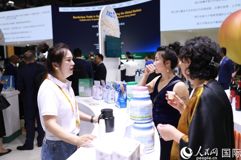 觀眾試飲澳大利亞乳制品。人民網(wǎng)記者 賈文婷攝