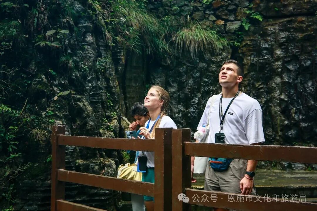 次日,旅行商們來到恩施大峽谷,被大自然的鬼斧神工所震撼。雄奇險(xiǎn)峻的山峰、幽深秀麗的峽谷、飛珠濺玉的瀑布,以及獨(dú)特的喀斯特地貌,構(gòu)成了一幅幅如詩如畫的美景。大家紛紛拍照留念,贊嘆不已?!斑@里的自然風(fēng)光太壯觀了,相信一定會(huì)吸引大量國(guó)外游客前來觀光?!眮碜远砹_斯的旅行商激動(dòng)地說。