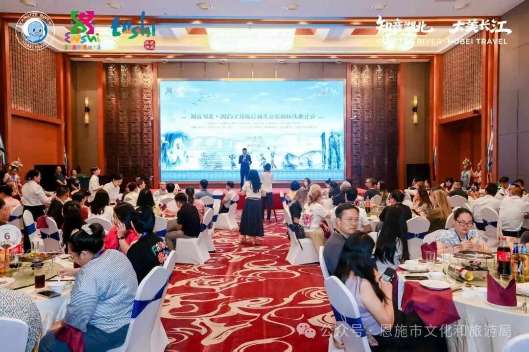 活動(dòng)期間,精心策劃文旅推介會(huì),精美的文旅宣傳片全方位展示了恩施的自然風(fēng)光、民俗文化、特色美食等,更用國(guó)際化的語言介紹了恩施豐富的旅游資源和線路產(chǎn)品。精彩的民族節(jié)目表演更是將活動(dòng)推向了高潮,讓旅行商們大飽眼福,贏得陣陣掌聲。
