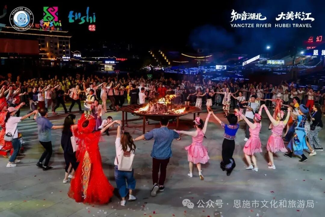 來到恩施市的首站,旅行商團(tuán)隊(duì)走進(jìn)恩施女兒城。通過古色古香的吊腳樓群、原汁原味的民俗表演和互動(dòng)體驗(yàn),讓外賓們直呼“穿越時(shí)空”。圍著篝火跳完擺手舞,來自俄羅斯的代表興奮地表示:“傳統(tǒng)舞蹈的韻律和熱情極具感染力,這種活態(tài)文化傳承比博物館展示更令人難忘!”
