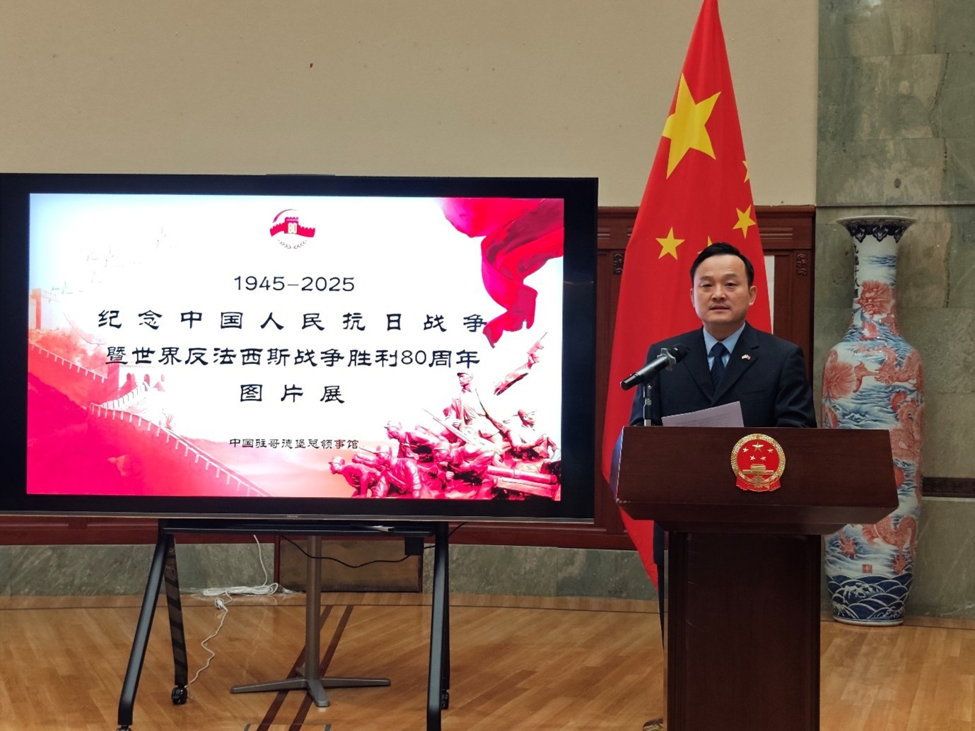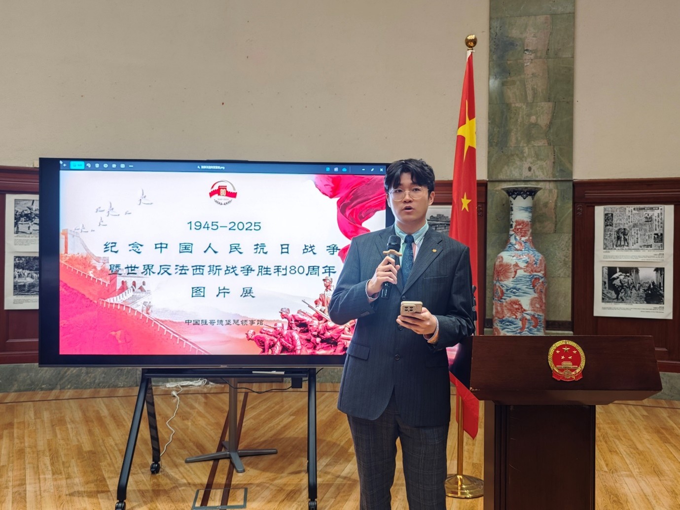 人民網(wǎng)斯德哥爾摩9月12日電 (記者殷淼)9月12日,中國駐哥德堡總領(lǐng)館隆重舉辦紀念中國人民抗日戰(zhàn)爭暨世界反法西斯戰(zhàn)爭勝利80周年圖片展和招待會。領(lǐng)區(qū)僑胞、留學(xué)生和社會各界人士300余人出席,中國駐哥德堡總領(lǐng)事楊培棟現(xiàn)場致辭。
