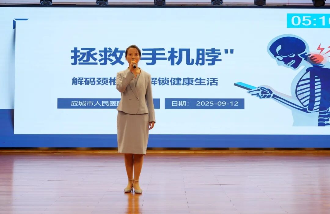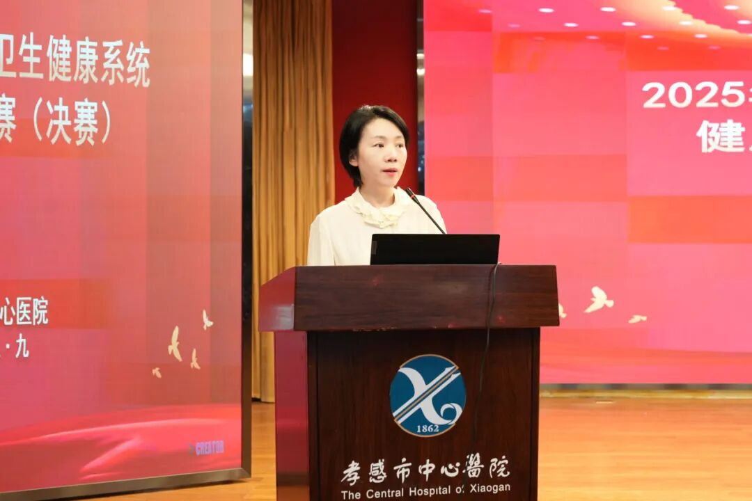 孝感市中心醫(yī)院副院長(zhǎng)張海燕在健康科普大賽上進(jìn)行致辭,經(jīng)過(guò)前期預(yù)賽,18位來(lái)自各醫(yī)聯(lián)體成員單位的參賽代表同臺(tái)競(jìng)技,圍繞慢性病管理、急救常識(shí)、婦幼健康、老年健康等群眾關(guān)切的健康話題開(kāi)展了科普宣講。