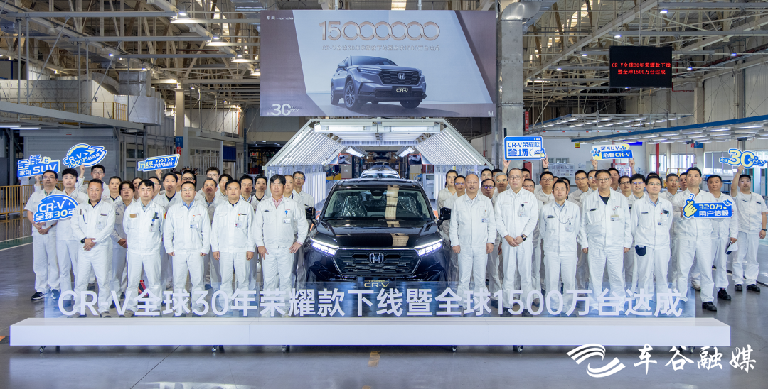 9月15日11時(shí)40許,在位于武漢經(jīng)開(kāi)區(qū)的東風(fēng)本田第三工廠總裝車間,一輛東風(fēng)本田CR-V全球30年榮耀款緩緩駛下生產(chǎn)線。同日,CR-V全球累計(jì)銷量突破1500萬(wàn)臺(tái),成為全球最受歡迎的家用SUV之一。