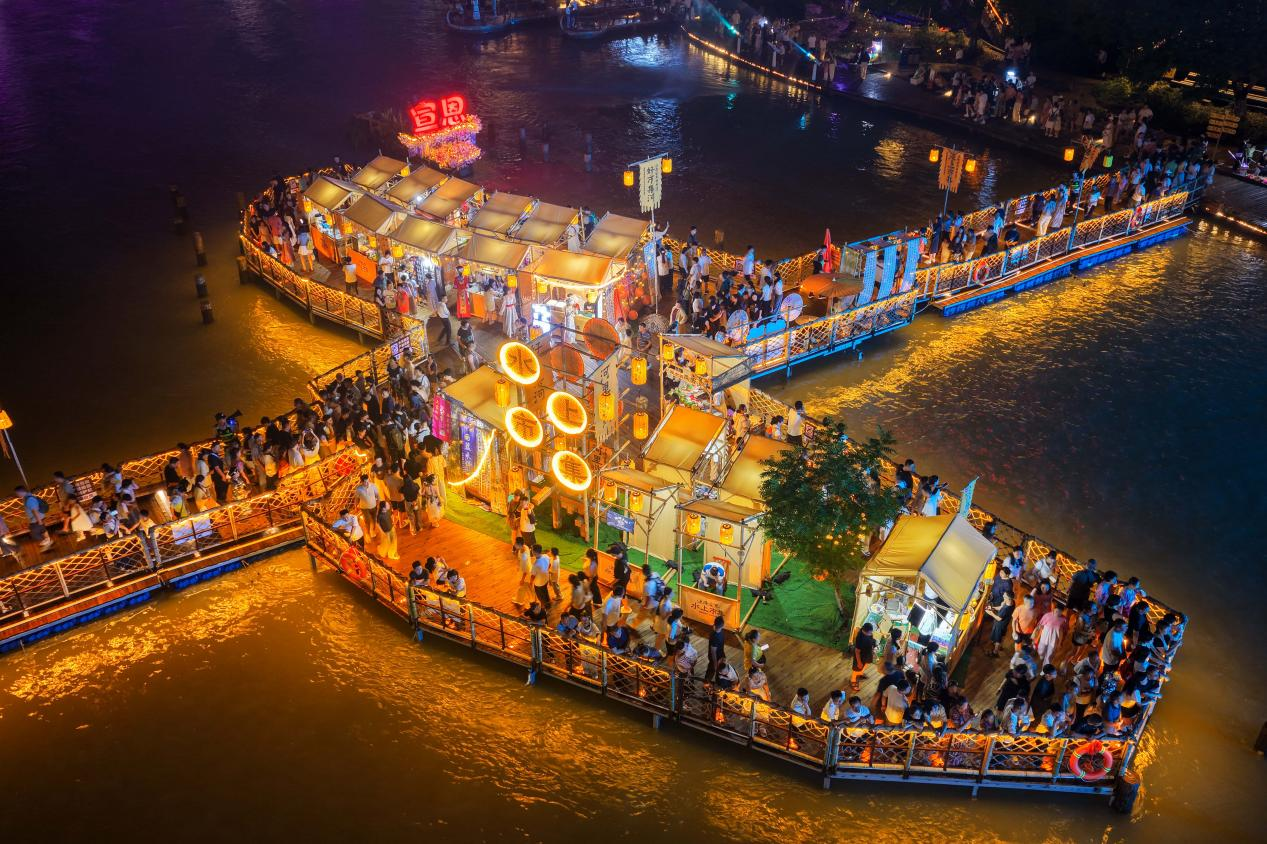 新大集拉動(dòng)新消費(fèi)。9月16日晚19:00至21:00,在恩施州宣恩縣城沿河兩岸開設(shè)特色水上市集,商家與NPC以特定古風(fēng)造型進(jìn)行集市售賣。形式新穎、文化元素突出,深受年輕消費(fèi)者喜愛。家電、3C數(shù)碼、汽車等商品集中亮相,以舊換新、專項(xiàng)優(yōu)惠福利、促銷大禮包抽獎(jiǎng)等各類活動(dòng)持續(xù)推出,現(xiàn)場消費(fèi)火熱。