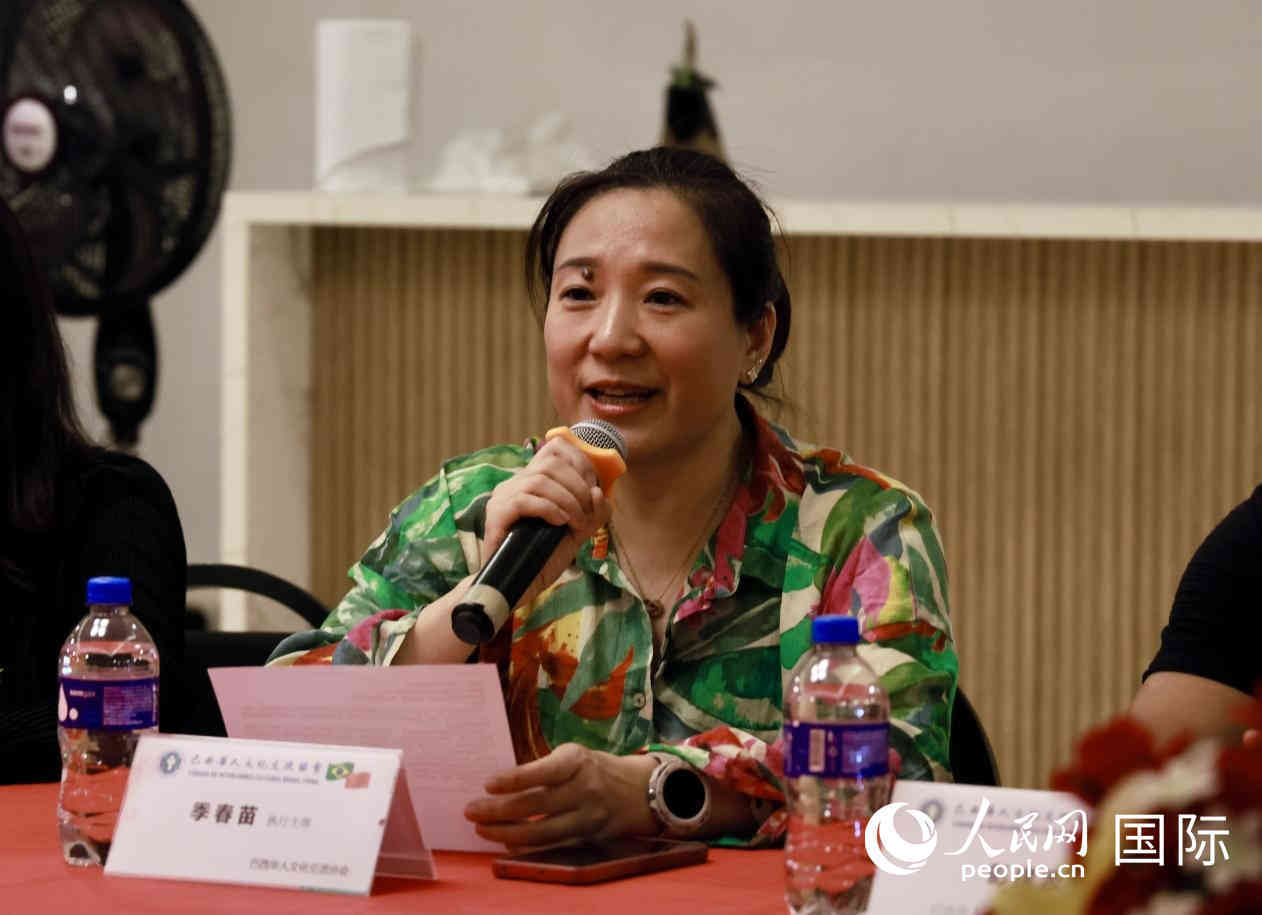 巴西華人文化交流協(xié)會(huì)執(zhí)行主席季春苗在座談會(huì)上致辭。人民網(wǎng)記者 宋亦然攝
