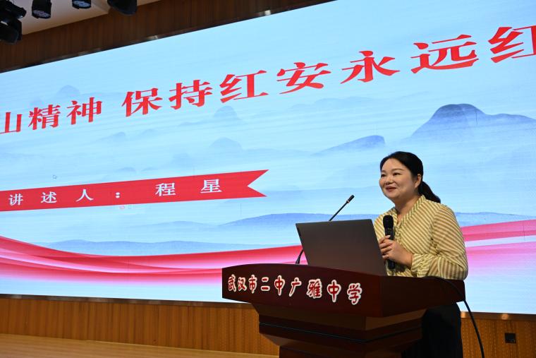 活動在莊嚴肅穆的氛圍中拉開帷幕。第十四屆全國人大代表、黃麻起義和鄂豫皖蘇區(qū)紀念園游客接待中心副主任程星同志帶來專題宣講。結合十七年深耕紅色文化的實踐,程星以豐富史料為基、鮮活案例為引,系統(tǒng)解讀習近平總書記關于大別山精神的重要論述,深刻闡釋“堅守信念鑄忠魂、緊跟黨走踐初心、顧全大局顯擔當、團結奮斗創(chuàng)偉業(yè)、勇當前鋒爭先鋒、不勝不休礪志氣”的精神內(nèi)核,贏得師生陣陣掌聲。